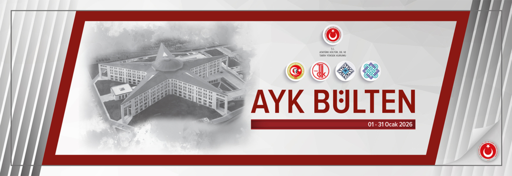 Atatürk Kültür, Dil ve Tarih Yüksek Kurumu tarafından hazırlanan AYK Bülten’in Ocak Sayısı yayımlanmıştır. Yüksek Kurum ve Bağlı Kurumlar tarafından düzenlenen etkinlikler, gerçekleştirilen projeler ve yayımlanan eserlerle ilgili bültene aşağıdaki bağlantıdan erişebilirsiniz.