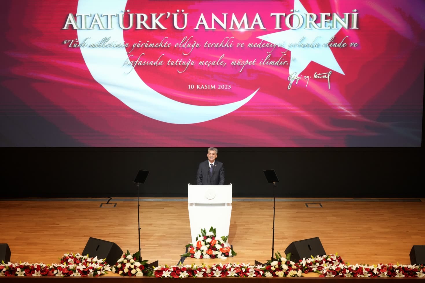 Konuşmasını, “Gazi Mustafa Kemal Atatürk’ü saygı, minnet ve rahmetle anıyorum” sözleriyle tamamlayan Bakan, Atatürk’ün fikirleri, bugün ve gelecekte yolumuzu aydınlatmaya devam ediyor” dedi.